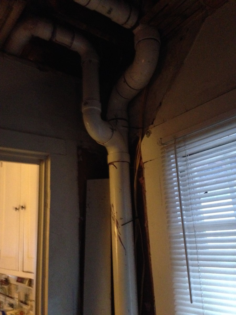 IMG_1435 Published January 27, 2015 at 2448 × 3264 We hid the pipes from a previous upstairs remodel in the new wall and behind a kitchen cabinet front.