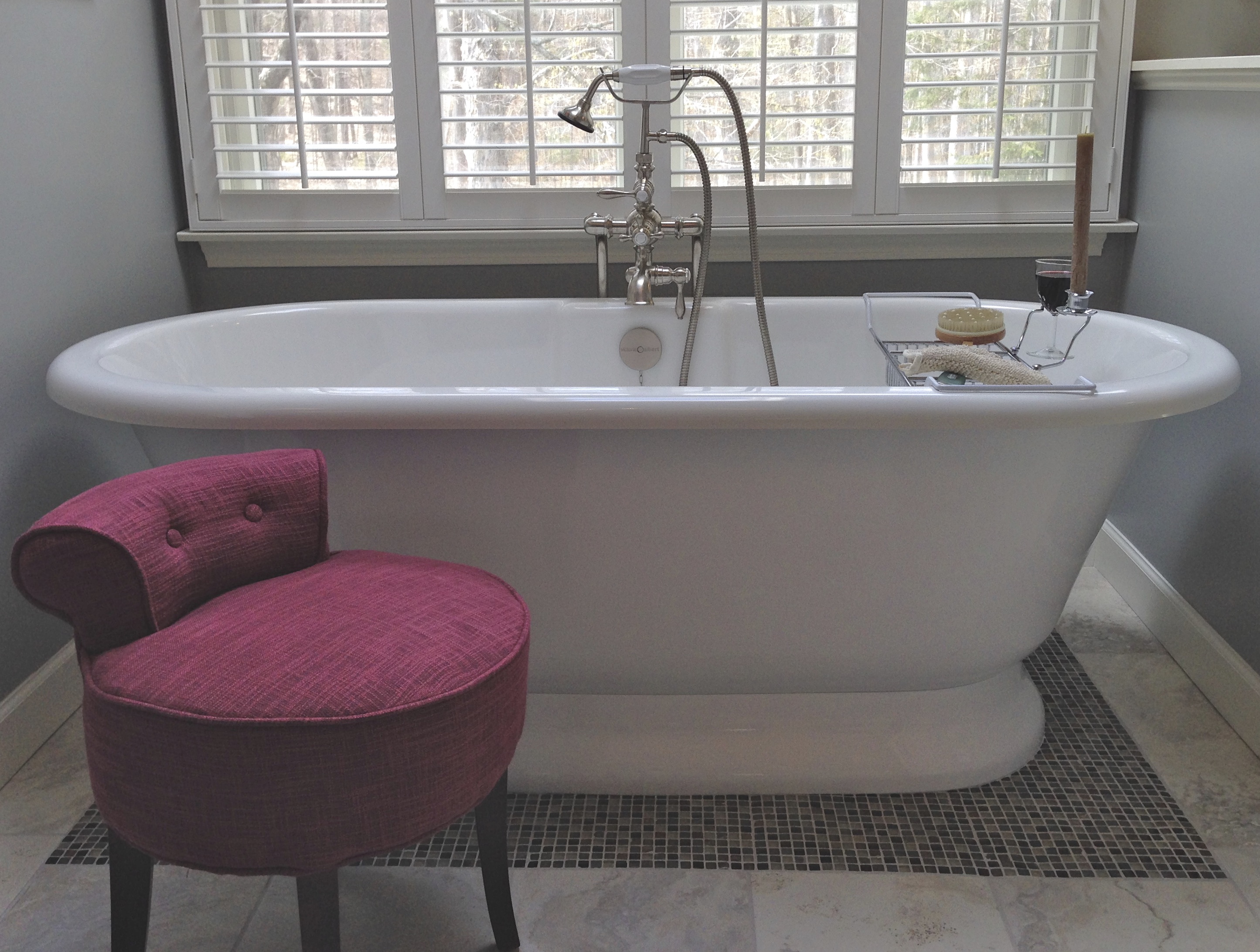 IMG_1580 Published January 27, 2015 at 2890 × 2183 A comfortable soaking tub with a classic faucet. Shutters provide privacy when needed.