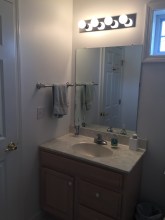 IMG_1962 Published March 7, 2018 at 2448 × 3264 BEFORE – The master bathroom had a short vanity cabinet before the renovation. Also, the entry door swung into the bathroom before we switched it.