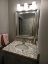 IMG_2960 Published March 7, 2018 at 2448 × 3264 This bathroom was updated with new cabinet, counter, faucet, mirror, light, and paint. We also added a new vent fan and additional ceiling lights. We also reinforced the wall where we added a grab bar toilet paper holder.