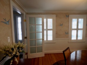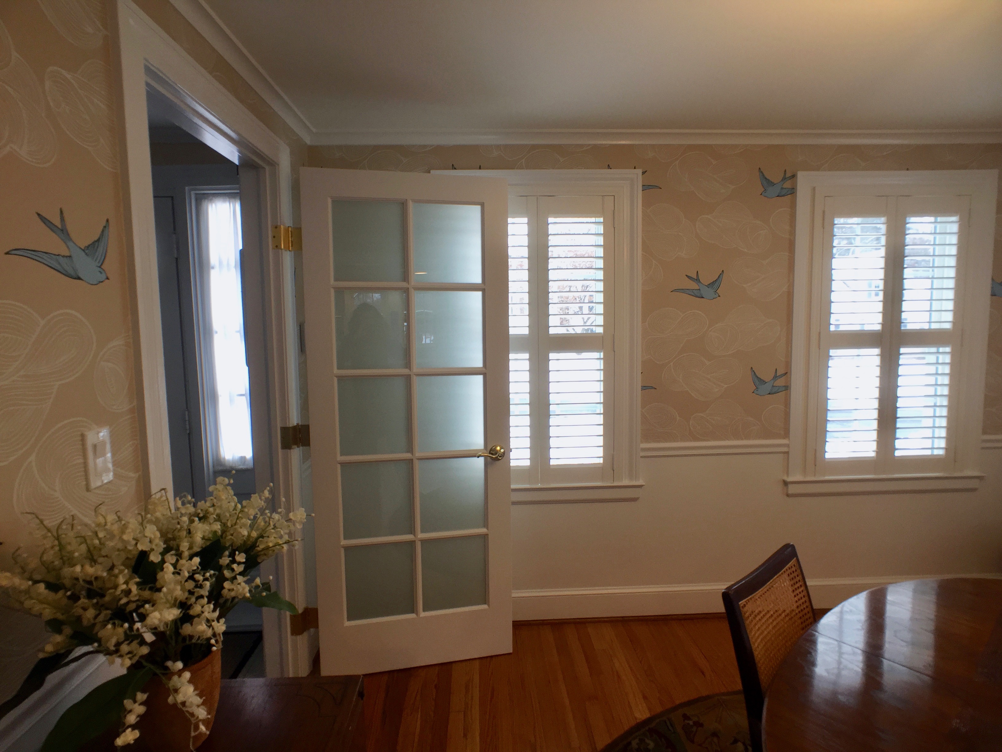 IMG_3119 Published March 6, 2018 at 3264 × 2448 The new door has white laminated glass to give privacy and light. The special hinges maximize the doorway width.