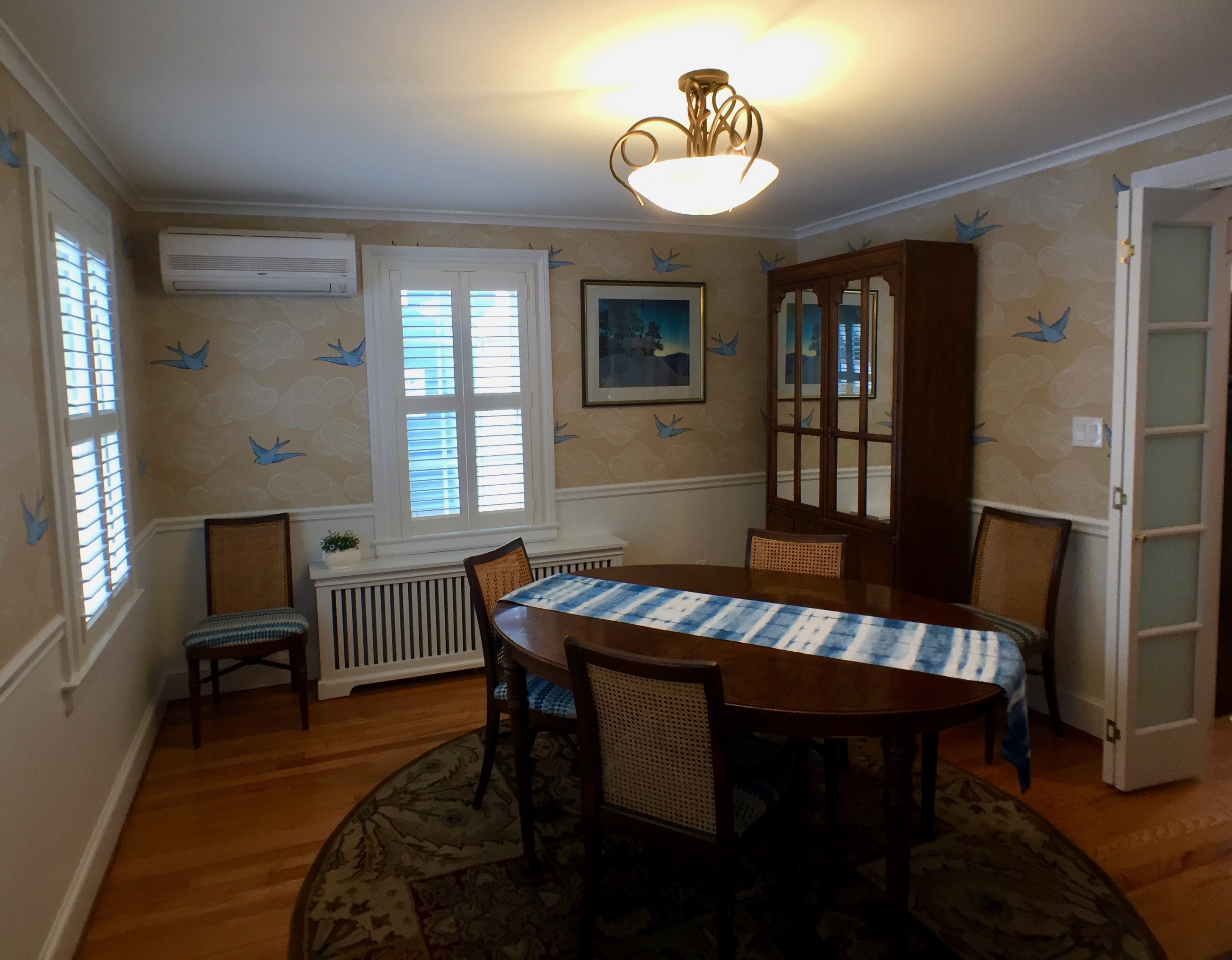 IMG_3134 Published March 6, 2018 at 2909 × 2267 The new wallpaper and semi-flush ceiling light give the dining room an airy feel.