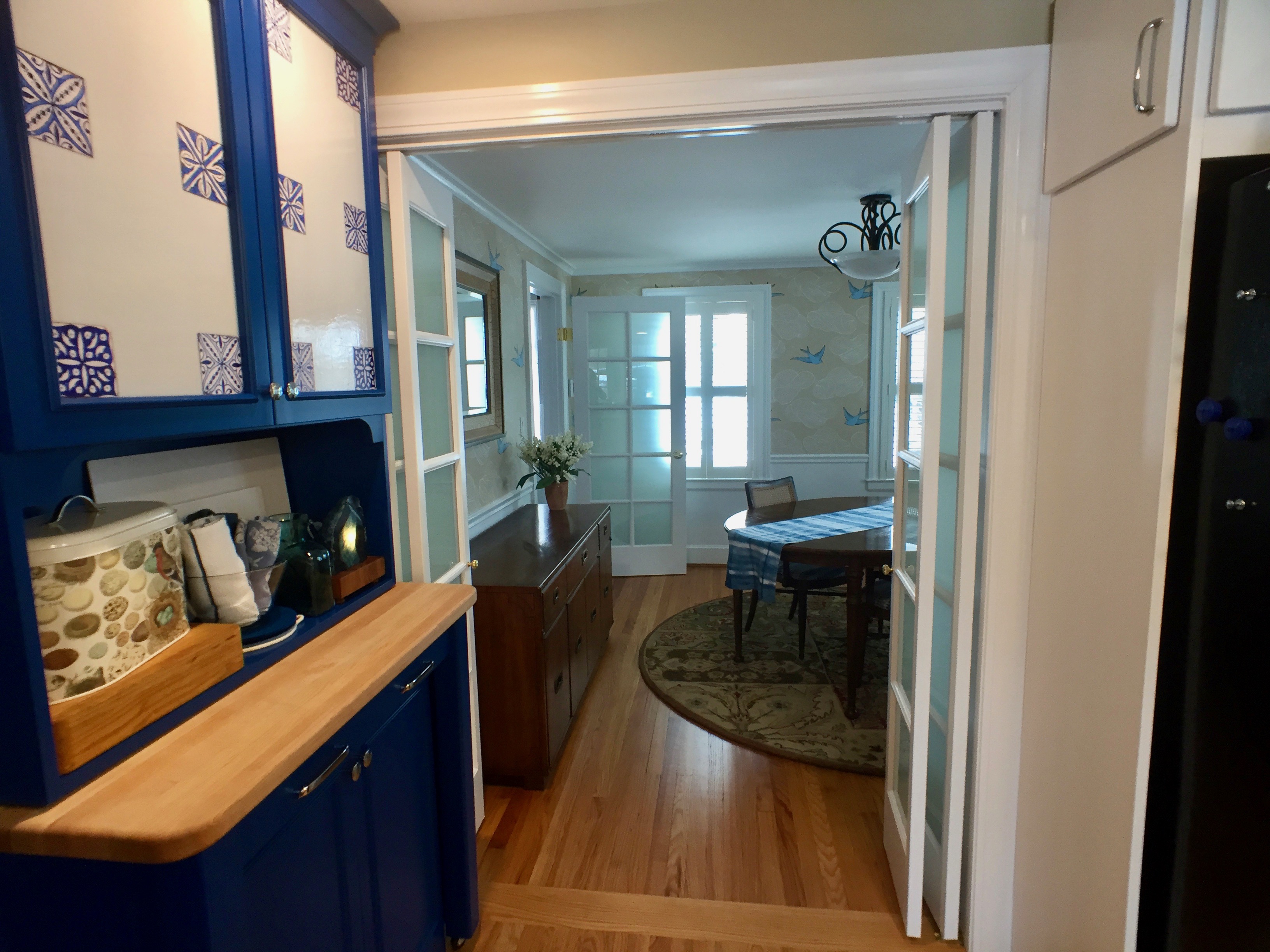 IMG_3163 Published March 6, 2018 at 3264 × 2448 By widening and moving the doorway to the dining room we allow more natural light and air to flow between the two rooms. In addition, the open feeling is a great improvement. The bifold doors take up minimal floor space.
