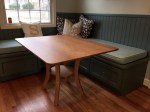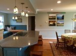 - Opening up the wall between the rooms allowed space for an island. You can also see the three coordinating light fixtures over the breakfast nook, island, and dining table.