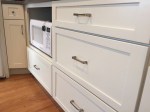 - We had to relocate the double ovens and pantry when the wall was removed. There is also a shallow pantry with built-in charging station next to a wider pantry with roll-out shelves.
