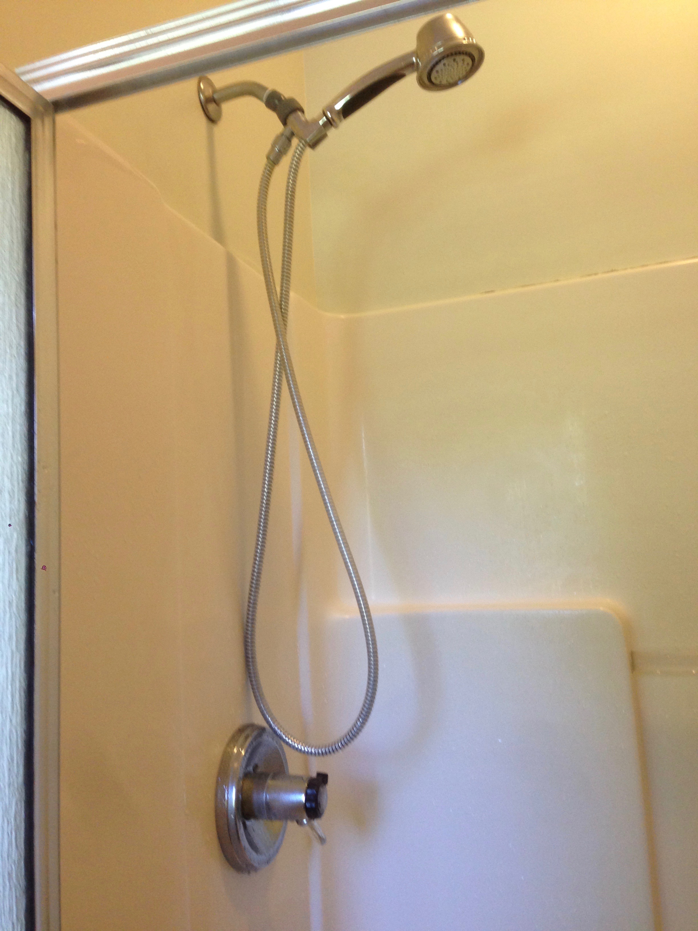 - The hand shower makes cleaning easy and is handy for using while seated.