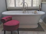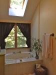 - A comfortable soaking tub with a classic faucet. Shutters provide privacy when needed.