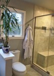 - Closing up the entrance to the shower room provided the opportunity for a spacious two-person shower with a bench seat.